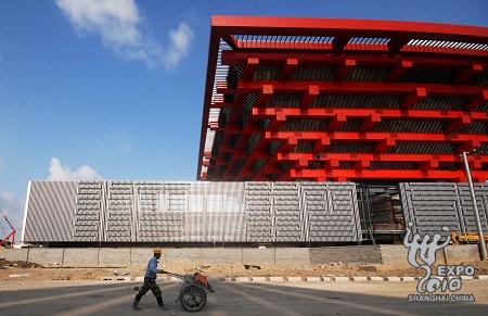 昨日(9月3日),在上海世博會(huì)標(biāo)志性建筑之一的中國(guó)地區(qū)館,“篆刻”外墻即將完成施工。中國(guó)地區(qū)館的外墻采用中國(guó)古老文字——篆書(shū)來(lái)作為裝飾,整個(gè)外墻間隔放置一組“篆刻文字”,組成中國(guó)傳統(tǒng)的二十四節(jié)氣。中國(guó)館由國(guó)家館、地區(qū)館和港澳館等組成,地區(qū)館將為大陸各省、市、區(qū)提供展覽場(chǎng)所。
