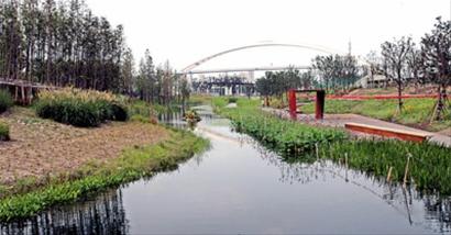 張飲江告訴記者,每天有2400立方米的黃浦江劣五類水被引入后灘公園的濕地水系,在園內(nèi)流淌1.7公里,在此過程不斷凈化,進(jìn)入世博公園時(shí)就達(dá)到三類水。這些三類水進(jìn)入世博公園水系后,形成了景觀用水,還能滿足世博公園與后灘公園自身的綠化灌溉及道路沖洗等需要。