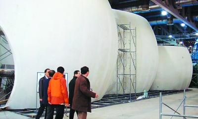 在山東館前,我們看見地面幾位工程師正在商量,上面的架子上幾位工人正在施工。王錦珍副會(huì)長(zhǎng)向正在那里的施工負(fù)責(zé)人詢問進(jìn)展情況,施工負(fù)責(zé)人回答說(shuō),我們施工進(jìn)展很順利,這個(gè)月底就可以完工,并將很快轉(zhuǎn)入試運(yùn)行。月底,省里的領(lǐng)導(dǎo)還將到這里來(lái)檢查。