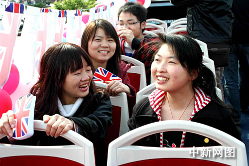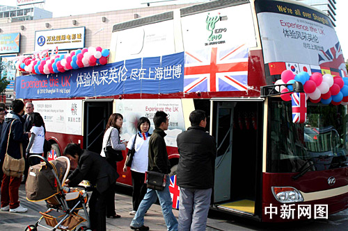 據(jù)了解,這是上海世博會(huì)英國館啟動(dòng)的中國城市巡游活動(dòng),英國標(biāo)志性的雙層巴士從上海啟程,沿路訪問成都、重慶、長沙、南昌和福州等城市,巴士將在5月舉行的上海世博會(huì)上亮相。(完)