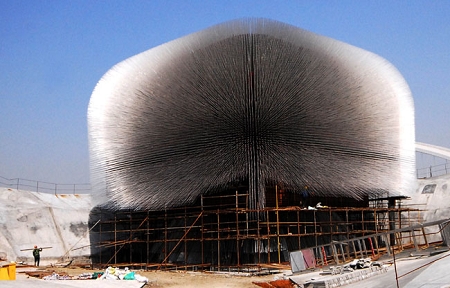 被中國(guó)公眾昵稱(chēng)為“蒲公英”的英國(guó)館已“綻放”待客。在初春的寒風(fēng)中,這座造型別致的展館滿(mǎn)身的“觸須”搖曳生姿,充滿(mǎn)動(dòng)感。