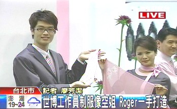 中新網(wǎng)4月15日電 據(jù)臺灣TVBS報道,上海世博會臺北館將于4月20日試營運,臺北市府15日特別對外召開記者會,讓臺北館工作人員的制服亮相,而幕后設計推手是知名造型大師Roger,他也現(xiàn)身說明設計理念。