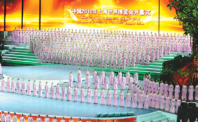 當(dāng)700位少女吟詠出天籟之音的一刻,8000多人的上海世博文化中心一片靜寂;當(dāng)漫天焰火釋放出億萬人激情的時(shí)候,黃浦江兩岸又轉(zhuǎn)而熱血沸騰。一靜一動(dòng),室內(nèi)室外,陸地江面,天空大地,讓世博會(huì)開幕式形成天地合一的整體。