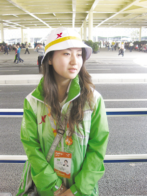張?bào)蘩霞以诮,是?fù)旦大學(xué)視覺藝術(shù)學(xué)院的大一學(xué)生,標(biāo)準(zhǔn)的90后女孩。通過網(wǎng)上報(bào)名并獲得任用后,她成為了上海世博會(huì)首批志愿者,而如果再細(xì)分則可稱作“高峰期志愿者”!懊刻煸缟7點(diǎn)半不到就得到園區(qū),晚上下班時(shí)間不定,至少10點(diǎn)以后吧!睆?bào)薷嬖V記者,她每天要做的,就是站在這處位于商業(yè)中心最繁華的街角,為任何有需要的游客提供力所能及的幫助。接受采訪時(shí),女孩才正式上崗短短半日,“已經(jīng)為至少20個(gè)游客指路,或是回答他們的一些咨詢!