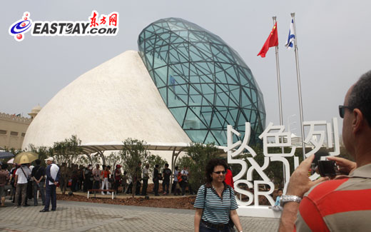 東方網(wǎng)記者今天上午在位于世博園A片區(qū)以色列館門外廣場看到,這里已經(jīng)是人山人海,由于今天陽光比較充足,現(xiàn)場很多人都打起了遮陽傘。記者看到,雖然以色列館外目前還沒有表演活動,館內(nèi)場景的布置和展示也和之前一樣,但是觀眾熱情依然非常高,排隊人群已經(jīng)把場館“團團圍住”。現(xiàn)場工作人員告訴記者,參觀者可能需要排隊一小時才能入館參觀。記者還在現(xiàn)場遇到不少以色列人,和大家熱情打招呼,他們一大早就專程趕到以色列館參加今天的活動。
