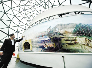 以色列館總面積2000平方米,分為3個體驗區(qū)!皩υ挕保瑥淖詈笠粋體驗區(qū)“創(chuàng)新廳”說起。這是一座360度環(huán)形劇院,高20米,可容納300人。