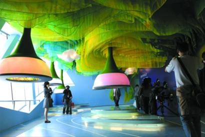 輕輕觸摸像蘑菇一樣的植物,感覺涼涼的、軟軟的;葉片上垂下長長的絲線,像白色的觸須……這是英國館里展示的“未來植物”。工作人員介紹說,將來可讓蘑菇狀植物粘附于室內墻壁上,發(fā)揮吸音功能,降低噪聲;而垂下絲線的植物更加神奇,如將犯罪嫌疑人的基因植入這種植物體內,此后一旦檢測到相同的基因,植物就能自動發(fā)出聲音報警。等科學家的這些研究成熟后,看似神奇的童話將變?yōu)楝F(xiàn)實。