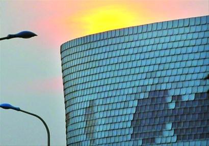 為什么帷幕能發(fā)電?原因就來自于帷幕上掛著的那1萬個“小太陽”,每個“小太陽”都有1塊內嵌太陽能智能電池板,可以吸收光能而發(fā)出閃光。據介紹,這些小太陽的學名是聚碳酸酯板,每個20厘米見方,包括一個能量發(fā)生器、一個存儲介質和一個LED形式的電力負載。吸收太陽光后,產生的能量可以轉換為白色燈光。在游客的照相機閃光燈閃亮時,“小太陽”便會回閃,如同在對你眨眼睛一般。隨之,它周圍的“鄰居”在感知動靜后,形成“多米諾效應”,整個外墻就會閃成一片紅色光海。值得一提的是,1萬個“小太陽”白天在吸收太陽能和其他光能后,晚上就能為展館燈光供電。
