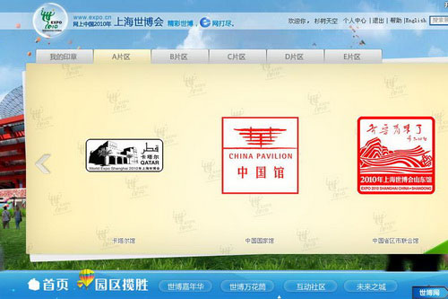 “網(wǎng)上世博護照”所用的展館印章與實體展館的基本一致。這些印章生動體現(xiàn)了各展館的特色,具有收藏價值,同時,網(wǎng)民還可以隨時查看已經(jīng)收集的印章與尚未收集的印章,并可在論壇發(fā)帖,將自己收集的印章與網(wǎng)友分 享。