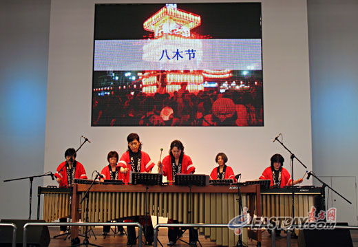 東方網(wǎng)記者向場(chǎng)上工作人員了解到,在日本產(chǎn)業(yè)館,每天都會(huì)上演四場(chǎng)音樂(lè)會(huì),時(shí)間分別為11:00、13:30、16:00和18:30,諸多來(lái)自日本本土的專(zhuān)業(yè)級(jí)音樂(lè)團(tuán)體將為觀眾帶來(lái)風(fēng)格迥異的音樂(lè)節(jié)目,且每周都有不同的樂(lè)團(tuán)前來(lái)獻(xiàn)演。在這里,藝術(shù)家們將用或民族、或世界的樂(lè)器演奏中日等國(guó)的民族樂(lè)曲,而本周的節(jié)目將由日本著名的馬林巴樂(lè)團(tuán)“北星會(huì)”出演。