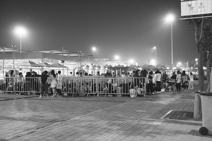 500多人在圍欄邊席地而坐,或聊天或瞌睡,為的是上午9時開園后第一時間進(jìn)入……這是今晨1時,記者在世博園區(qū)浦東上南路入口處看到的情形。同樣的一幕,也出現(xiàn)在了距離文化中心較近的長清路、洪山路、高科西路等入口,總?cè)藬?shù)不下2000人。如此場面,令值夜班的安保人員傻了眼,“開園第一天也沒這么早來的,有的昨天還沒閉園就來了!”