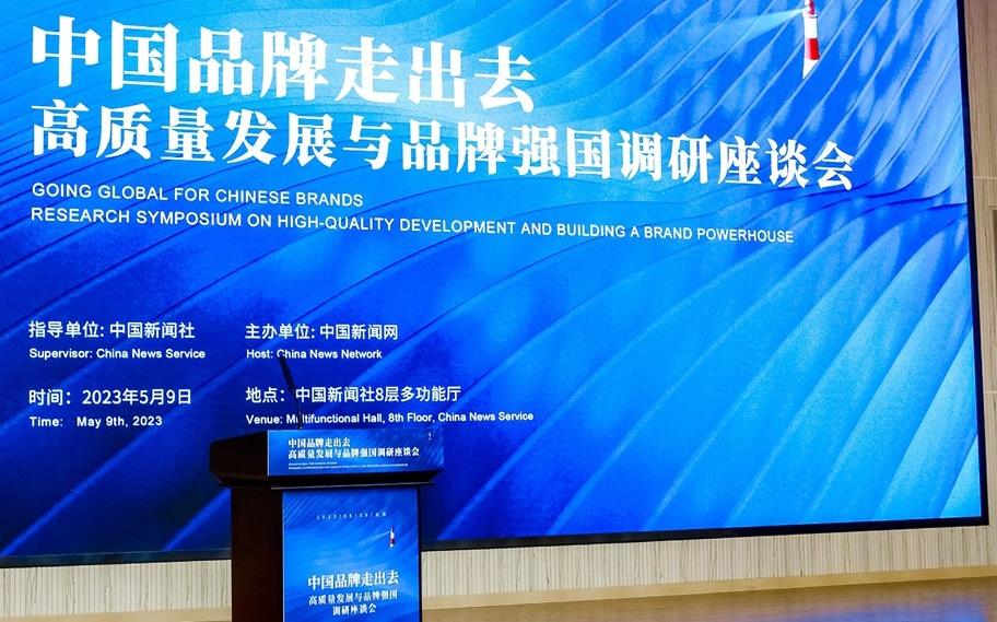 2023年5月9日,由中國新聞社指導、中國新聞網(wǎng)主辦,以“中國品牌走出去”為主題的高質量發(fā)展與品牌強國調研座談會在北京舉行。調研座談活動以推動中國高質量發(fā)展,加快品牌強國建設,助力中國品牌走向世界為主旨。