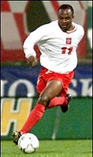 這位1978出生的希臘帕納辛奈科斯隊的前鋒是一個尼日利亞人,不過在波蘭總統(tǒng)的親自過問下,這位黑人前鋒得以迅速加入波蘭國籍,而他在代表波蘭國家隊的第一場比賽中就不負(fù)眾望攻入一球,使本隊逼平了東歐勁旅羅馬尼亞。他在本次預(yù)選賽中攻入了8球,對于波蘭第一個從強隊如林的歐洲賽區(qū)第一個出線,起了決定性的作用,也得到了波蘭人民的一致認(rèn)可,已經(jīng)被公認(rèn)為是波蘭的英雄人物。