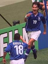 德爾-皮耶羅:斑馬王子,尤文圖斯的當家小生,意大利國家隊最有爭議的人物之一。他在1994-96年達到自己職業(yè)生涯的高峰,被譽為意大利的"金童"。不過在世界杯期間以及以后很長一段時間都狀態(tài)低迷,曾經有很長一段時間沒有在運動戰(zhàn)中進球,唯一的進球手段只是點球,從而得了一個"點球皮"的外號。