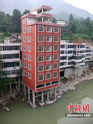 中新網(wǎng)恩施7月17日電(詹宏升 陳地長)湖北恩施州鶴峰縣一村民在河道里建起7層高樓房,嚴(yán)重威脅行洪泄洪的安全,被網(wǎng)友稱為“湖北最牛違章建筑”。記者了解到,當(dāng)?shù)卣严蚍恐鲝埬诚掳l(fā)了自行拆遷通知書,如果到本月25日,張某還沒有自行拆除,政府將強(qiáng)制拆除。