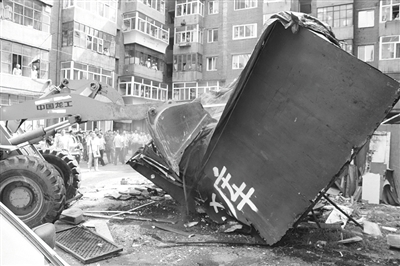 23日14時(shí)許,記者隨同80余名執(zhí)法人員來(lái)到現(xiàn)場(chǎng),經(jīng)執(zhí)法人員連日調(diào)查發(fā)現(xiàn),遼陽(yáng)街57號(hào)院內(nèi)共有私建車庫(kù)11處,房主不能提供任何審批手續(xù),并拒不自行拆除。當(dāng)執(zhí)法人員調(diào)動(dòng)鏟車準(zhǔn)備進(jìn)行拆除時(shí),一家車庫(kù)的房主將吉普車?吭谲噹(kù)前,不讓鏟車靠近,并站在車庫(kù)門前對(duì)執(zhí)法人員進(jìn)行辱罵。其中一名男子更是拿出把30多厘米長(zhǎng)的大長(zhǎng)砍刀,揚(yáng)言靠近傷到不負(fù)責(zé),并在執(zhí)法人員面前揮舞砍刀,一名執(zhí)法人員受傷。他一邊揮舞砍刀一邊對(duì)執(zhí)法人員進(jìn)行辱罵,站在旁邊的3名男女不時(shí)地推搡執(zhí)法人員,阻止拆除工作。面對(duì)恐嚇和威脅,執(zhí)法人員采取措施將私建房主隔離現(xiàn)場(chǎng),并調(diào)來(lái)拖車將擋在車庫(kù)前的吉普車拖離現(xiàn)場(chǎng)后立即開展拆除。隨著鏟車的轟鳴聲,11處侵占居民生活空間的私建車庫(kù)被強(qiáng)拆。