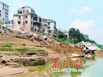 前晚,封開縣副縣長梁漢榮站在泛光的賀江邊,看著像“多米諾骨牌”一樣倒掉的8棟樓房,對南方日報記者說:“這是不幸中的萬幸。”