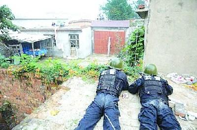 天亮后,警方開(kāi)始采取行動(dòng)。經(jīng)對(duì)環(huán)境的縝密勘察,在院落的東、東南和西、西南四個(gè)方向的制高點(diǎn)分別設(shè)置狙擊點(diǎn),以武警4名狙擊手為主,采用狙擊步槍和自動(dòng)步槍封控大院。兩名武警突擊隊(duì)員在罪犯藏匿的房頂上,用磚頭砸開(kāi)玻璃,而后向兩個(gè)房間內(nèi)投入4枚催淚彈,逼犯罪嫌疑人出屋。公安刑警7人,利用武警趁黑在院門(mén)配房南墻挖開(kāi)的缺口處進(jìn)入院內(nèi),迅速前出,實(shí)施抓捕。