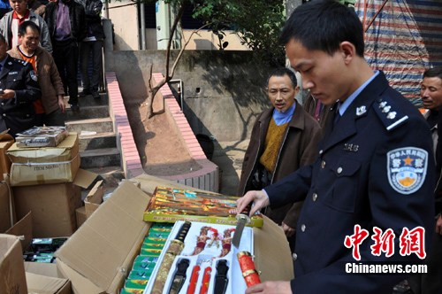 據(jù)通報,11月3日,重慶云陽縣警方接到群眾舉報稱,云陽新城銀海綜合批發(fā)市場內(nèi)發(fā)現(xiàn)仿真槍銷售點。警方迅速前往批發(fā)市場突擊搜查,在一門市店面內(nèi)發(fā)現(xiàn)7支仿真槍,同時,在門市地下倉庫發(fā)現(xiàn)大量的仿AK47、仿64式、仿77式仿真槍,以及大量摔炮、塑料子彈等。