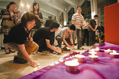 追思會昨晚8時舉行,神職人員在詩歌聲中步入禮堂,臺前放上梁錦榮讀書時的照片,由天主教香港教區(qū)副主教陳志明神父主持,教堂坐滿近600人,曾蔭權(quán)伉儷亦有出席,各人神情哀傷。