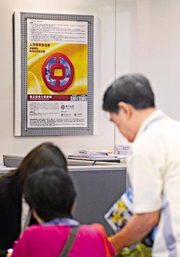 交銀香港荃灣分行昨日設(shè)立特定人民幣債券銷售柜臺,中午時認購隊伍至少同時有6人在輪候,要等候30至60分鐘,F(xiàn)場亦有一對老夫婦礙于附近中銀分行出現(xiàn)排隊人潮,專程而來才發(fā)現(xiàn)不能開投資的聯(lián)名戶口。有新客戶到中銀筲箕灣分行買人民幣債券,現(xiàn)場職員提醒,客戶必須闖三關(guān),包括開存款和投資戶口,購買人民幣債券,整個過程要1小時半。渣打及中信銀行國際太子分行,昨午未見有認購人潮。