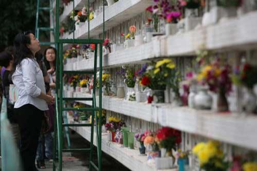 中新網(wǎng)10月17日電 據(jù)香港大公報(bào)報(bào)道,秋高氣爽,香港大批孝子賢孫在重陽(yáng)節(jié)前往拜祭先人。不僅將軍澳和鉆石山等墳場(chǎng),連紅磡一帶的長(zhǎng)生店,也有市民手持大包小包祭品,到先人骨灰龕位前拜祭,慎終追遠(yuǎn)。有市民到和合石景仰園,向馬尼拉人質(zhì)事件中罹難的其中四名港人致祭。