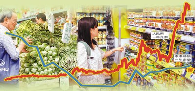 供港的平價衣履、耐用品、日常用品及食品多數(shù)靠內地進口,倘人民幣升值,香港進口商向內地供貨商取貨時,以港元計的進口價勢必上升。其中,香港大部分食品由內地入口,人民幣匯價攀升,加上原材料、運輸費用上漲,直接導致香港百物騰貴。港九罐頭洋酒伙食行商會理事林國坤指出,日前接獲內地供貨商的通知,即日起調整來貨價,大部分肉類罐頭批發(fā)價最少加價10%,以反映內地生產成本及人民幣升值的影響,相信當香港零售商的存貨售清后,市面零售價會相應上調。