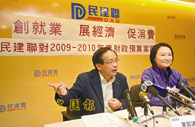 針對(duì)市民與企業(yè)稅務(wù)負(fù)擔(dān),民建聯(lián)提出涉及總額286億元的減免措施,包括設(shè)上限地寬免全港差餉及退還上年度征收的地租、2008/2009年度5成薪俸稅。其它建議還包括加強(qiáng)支持中小企業(yè),為有困難行業(yè)提供100%信貸擔(dān)保;加快與內(nèi)地聯(lián)合開(kāi)發(fā)河套與邊境區(qū);向中央爭(zhēng)取繼續(xù)擴(kuò)大香港人民幣業(yè)務(wù)范圍等。