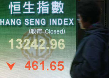 華爾街股市日前急挫3%,環(huán)球股市再現(xiàn)骨牌式的下跌,韓國股市暴跌超過6%,日股挫近5%,香港股市也難逃一劫,加上“大笨象”匯控被“摩笛”嚇倒,拖累恒指15日裂口低開568點(diǎn),開市不足10分鐘,恒指在13000點(diǎn)岌岌可危,在中午收市前最多暴跌800點(diǎn)至12904點(diǎn)低位。