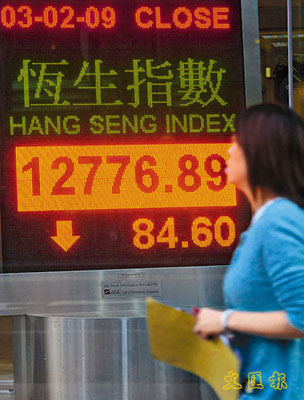 中新網(wǎng)2月4日電 據(jù)香港《文匯報(bào)》報(bào)道,港股3日再一次由升轉(zhuǎn)跌,早高開(kāi)130點(diǎn)后,在高位反復(fù)徘徊,最高曾見(jiàn)13065點(diǎn),但午市后升幅開(kāi)始收窄,最多跌逾130點(diǎn),全日收?qǐng)?bào)12776.8點(diǎn),跌84.6點(diǎn),成交額進(jìn)一步縮減至353.16億元。