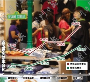 學(xué)者指出,每年第二、三季有不少大、中學(xué)生畢業(yè)投入勞動力市場,推高失業(yè)率。今年就業(yè)壓力大,畢業(yè)生找工作需時,第二、三季失業(yè)率恐怕會繼續(xù)上升,破4%的“臨界點”。雖然失業(yè)率會再攀升,但只要不超過5%,對社會就不會造成太大影響。