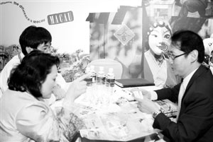 澳門特區(qū)政府旅游局分別在臺北及臺中舉行旅游洽談會,為業(yè)界提供平臺洽談業(yè)務。來自澳門的20多家酒店、旅行社、航空公司、會展業(yè)等旅游機構的代表,21日參加了在臺北舉行的洽談會,與當?shù)?50位旅行社代表商談合作事宜,吸引更多臺灣居民到澳門旅游。