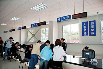 四月一日,深圳居民擴大個人游香港試點啟動,同時該市公安局出入境辦證大廳啟用。 中國公安部決定,自2009年4月1日開始實施為深圳戶籍居民辦理一年多次往返香港個人旅游簽注,新政策將惠及除國家登機備案工作人員之外的二百二十多萬居民。 中新社發(fā) 陳文 攝