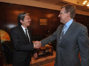 中新網(wǎng)6月3日電 據(jù)香港特區(qū)政府網(wǎng)站消息,香港財(cái)政司司長(zhǎng)曾俊華3日(莫斯科時(shí)間6月2日)與俄羅斯副總理Alexei Kudrin會(huì)面。