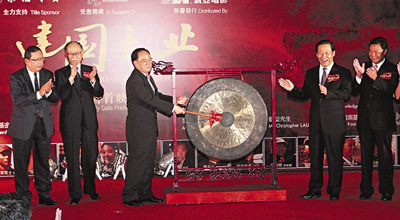 龍傳基金20日舉行《建國大業(yè)》慈善首映禮,籌得的善款將用以繼續(xù)推動華人青年的培育工作。曾蔭權20日晚親自主持儀式,為首映禮鳴鑼。