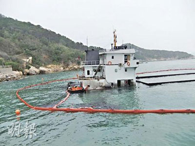 肇事內(nèi)地貨船長(zhǎng)約30多米,上周五(1月29日)擱淺后不斷入水下沉,3日剩下駕駛室及船弦在海面上,船四周被隔油網(wǎng)圍著,中間仍見烏黑的油漬漂浮,兩艘海事處油污處理組船只及小艇在附近清理油漬。