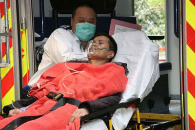 由于擔(dān)心醫(yī)療費(fèi)用,事主在21日晨7時(shí)許向醫(yī)生要求出院,之后由朋友協(xié)助駕駛私家車載返香港,并報(bào)警求醫(yī),救護(hù)車在港鐵九龍?zhí)琳緦?duì)面沙福道,接走事主送往伊利沙伯醫(yī)院檢查診治。