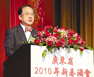曾蔭權(quán)于酒會(huì)致辭時(shí)指出,香港和廣東的共融合作超過30多年,從最初集中于經(jīng)濟(jì),到近年遍及不同領(lǐng)域,包括基建、教育、環(huán)保等,的確碩果累累,卓有成效。這是兩地政府、商界及民間團(tuán)體同心同德、長(zhǎng)期努力的成果。