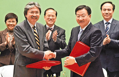 香港財(cái)政司司長(zhǎng)曾俊華與國(guó)家商務(wù)部副部長(zhǎng)姜增偉昨日簽訂CEPA第7份補(bǔ)充協(xié)議,在19個(gè)領(lǐng)域共35個(gè)措施中,其中14個(gè)服務(wù)領(lǐng)域的27項(xiàng)獲開放市場(chǎng),涉及建筑、醫(yī)療、技術(shù)檢驗(yàn)分析與貨物檢驗(yàn)、專業(yè)設(shè)計(jì)、視聽、分銷、銀行、證券、社會(huì)服務(wù)、旅游、文娛、航空運(yùn)輸、專業(yè)資格考試和個(gè)體工商戶。
