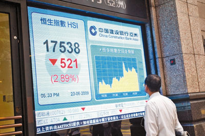 港股23日裂口低開,一度急跌近700點(diǎn)至17375點(diǎn),午后跌幅一度收窄至17683點(diǎn),但全日仍挫521點(diǎn),收市報(bào)17538點(diǎn),跌幅是3月以來最大,成交664億元。匯豐的季度調(diào)查顯示,40%基金經(jīng)理建議減持股票。
