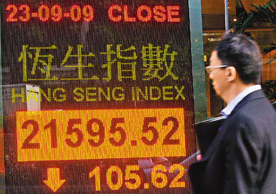 中新網(wǎng)9月24日電 據(jù)香港《文匯報(bào)》報(bào)道,美元匯價(jià)跌至13個(gè)月新低,不過亞洲股市回軟,內(nèi)地A股、日股、臺(tái)股也受壓,港股23日跌105.6點(diǎn),報(bào)21595.5點(diǎn),成交額588.5億元。