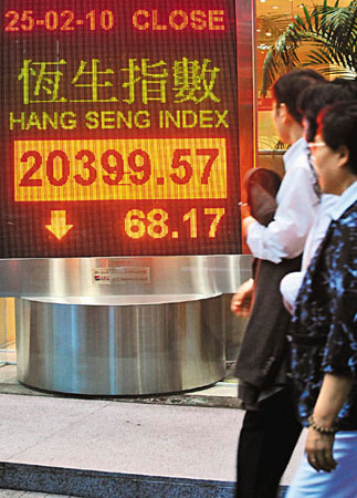 中新網(wǎng)2月26日電 據(jù)香港《文匯報》報道,港股25日早段跟隨外圍造好,但在期指結(jié)算日在淡友“發(fā)功”下,3月份期指由高水轉(zhuǎn)為低水,拖累港股由升轉(zhuǎn)跌,恒指不足2小時由高位急挫400點,最低見20261點,跌幅達200點。午后A股造好,港股跌幅收窄,恒指全日收報20399點,跌68點,成交額620億元。