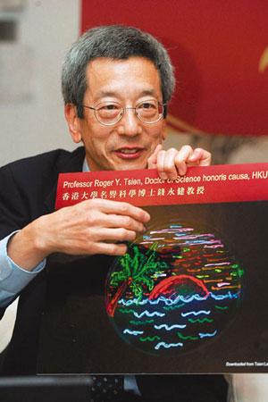 繼香港大學(xué)8日向錢(qián)永健頒授榮譽(yù)博士榮銜外,香港中文大學(xué)10日也會(huì)向他頒發(fā)榮譽(yù)理學(xué)博士,并由特首曾蔭權(quán)親自頒授。錢(qián)永健在香港的行程緊湊。他9日首先出席公開(kāi)講座,以“點(diǎn)綠成金”為題,在香港大學(xué)發(fā)表演說(shuō),當(dāng)中展示了他的實(shí)驗(yàn)室的最新研究進(jìn)展。