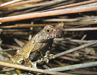 發(fā)掘?qū)W生組“十大熱點(diǎn)”冠軍的蘇樂軒,現(xiàn)就讀香港大學(xué)生態(tài)及生物多樣性學(xué)系,他在一次生態(tài)夜行中,在龍虎山郊野公園發(fā)現(xiàn)愛“夜蒲”的短腳角蟾。他指出,短腳角蟾是香港原生物種,臉上有角,樣子趣怪,多在夜間出沒,雄性更會(huì)在每年夏春的繁殖期利用叫聲吸引雌性,已被世界保育聯(lián)盟評為瀕危物種。