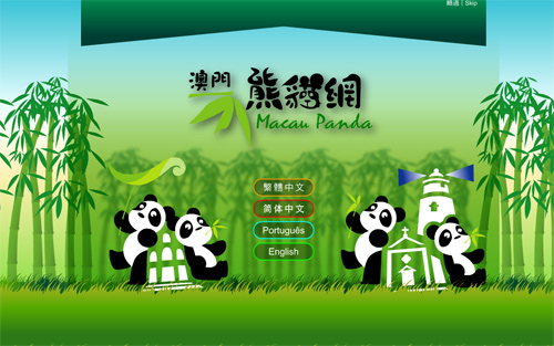 考慮到大熊貓的生活環(huán)境和習(xí)性,“澳門熊貓網(wǎng)”以綠色及竹葉為主,并以一對(duì)大熊貓背靠著澳門著名世遺景點(diǎn)--大三巴牌坊為圖案,吸引用戶的視線,展示澳門、大熊貓及網(wǎng)站的關(guān)聯(lián)性,亦希望加強(qiáng)市民對(duì)大熊貓的關(guān)懷及重視。