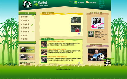 網(wǎng)站面向世界各地的使用者,具備繁體中文、簡(jiǎn)體中文、葡語(yǔ)及英語(yǔ)的接口,并會(huì)定期更新內(nèi)容,讓大眾能緊貼來(lái)澳大熊貓的消息及相關(guān)資訊。