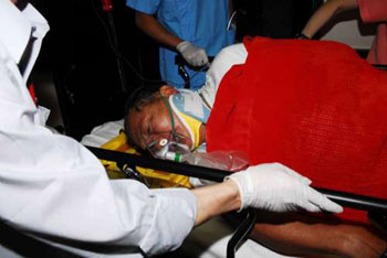 鐘×勝被高爾夫球車壓著,奄奄一息,其余各人除司機外也受傷,眾人驚魂剛定后實時進行搶救,但4人未能移動車身,只好轉向球場控制中心求助,職員接報趕往協(xié)助救援。鐘×勝面色轉白氣弱游絲,稱胸部好痛,大家擔心他可能是內(nèi)傷出血。
