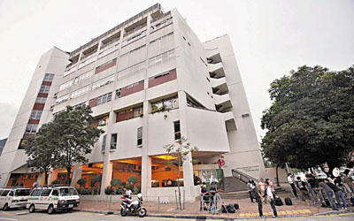 六月十六日上午,穿著保護衣的防疫人員到香港灣仔鄧肇堅維多利亞官立中學(xué)校園進行清潔。該校有學(xué)生確診感染H1N1流感后,當(dāng)局宣布即日起停課兩星期。 中新社發(fā) 張勤 攝