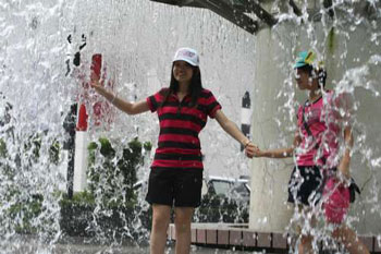 有本來(lái)想去星光大道的游客因?yàn)樘鞖鉄幔顼埡蟛蝗ビ瓮,索性跑去吃雪糕吹冷氣,但由于麥?dāng)勞爆滿,只好站在靠門口的地方享受漏出的清涼。公園大樹下坐滿了公公婆婆,坐著不動(dòng)還是滿身汗,人手一把扇都抗不過(guò)熱浪。大大小小的商場(chǎng)擠滿了人,無(wú)論買不買東西,吹了冷氣再說(shuō)。