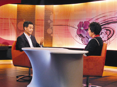在如何平衡香港及內(nèi)地利益的問題上,梁振英則表示,他個(gè)人的立場是要為香港的利益出發(fā),但同時(shí)要顧及國家的利益,并補(bǔ)充指港商早前因廣東省的“騰籠換鳥”政策而受到很大影響時(shí),他曾在一次與內(nèi)地官員的會議上反映問題,最后中央及廣東省政府都有聽取他的意見,故兩者的利益并不存在矛盾。